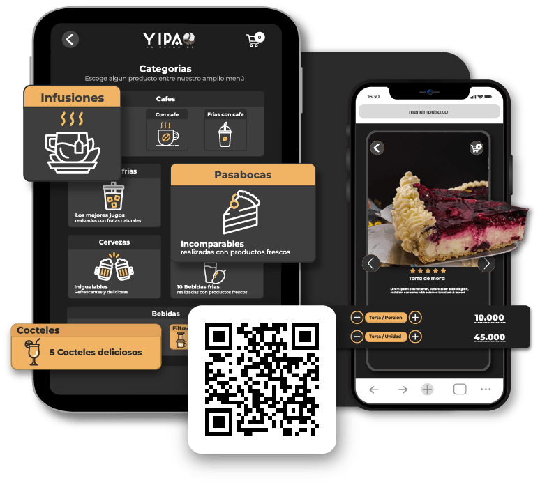 Tu menú vive en QR, tableta o computador, conectado en tiempo real.